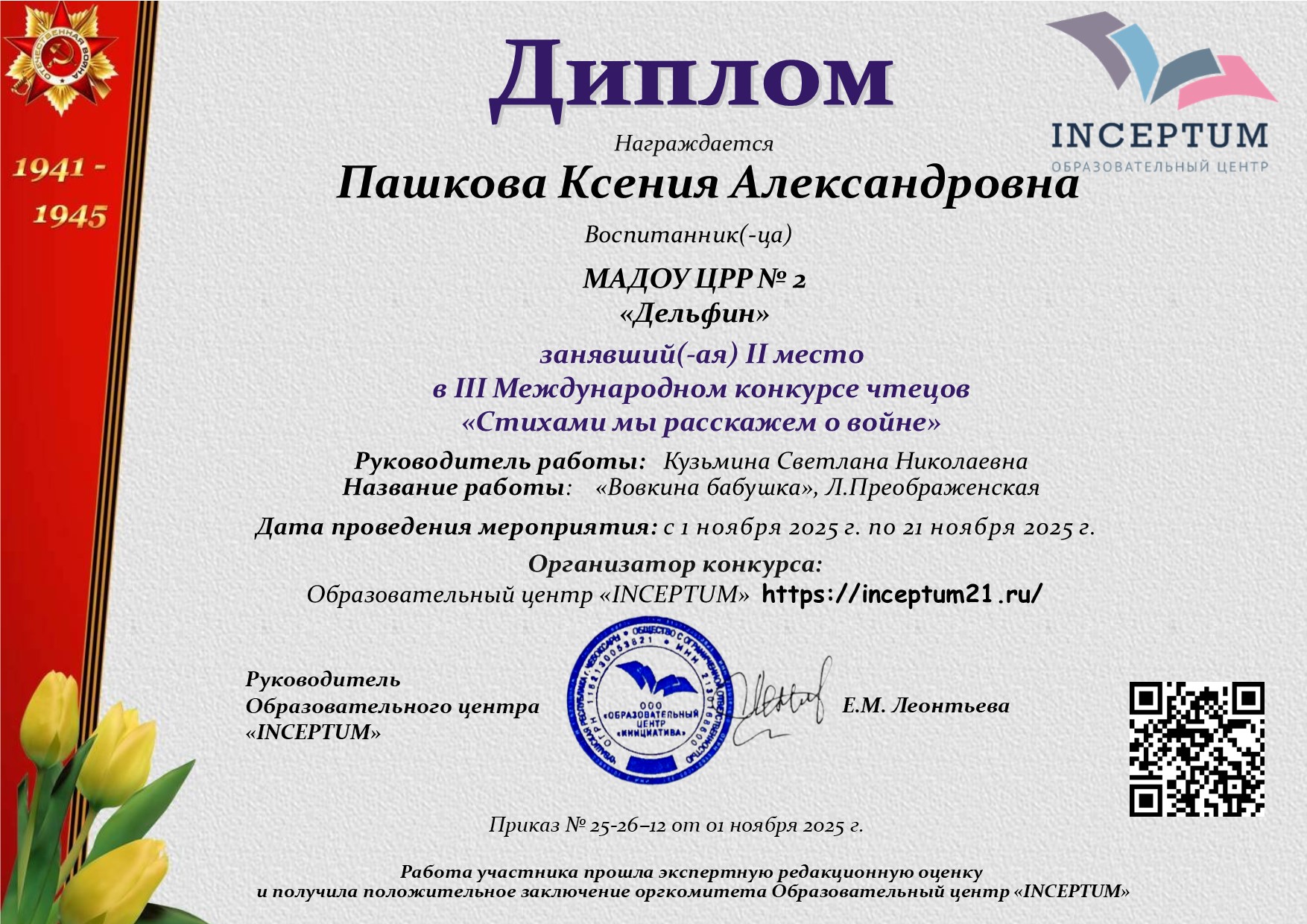 Диплом за участие во Всероссийском дне бега "Кросс нации 2024"